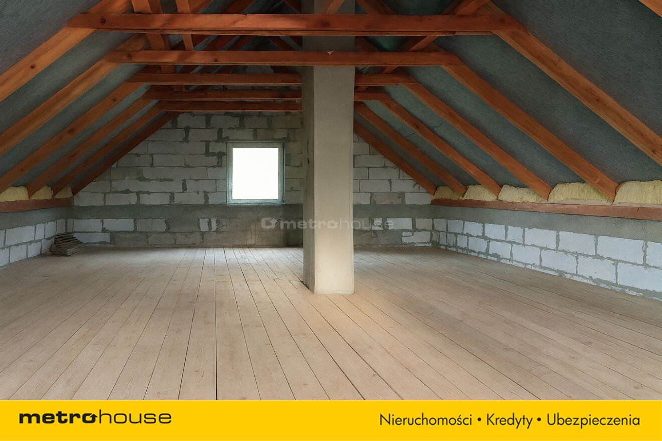 - poddasze, ok. 70 m2 powierzchni podłogi, wysokość do kalenicy 3,8 m do własnej aranżacji.